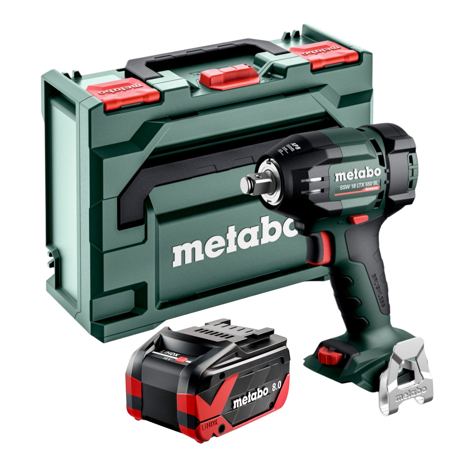 Metabo SSW 18 LTX 550 BL Visseuse à choc sans fil 18 V 550 Nm Brushless + 1x batterie LiHDX 8,0 Ah + metaBOX - sans chargeur