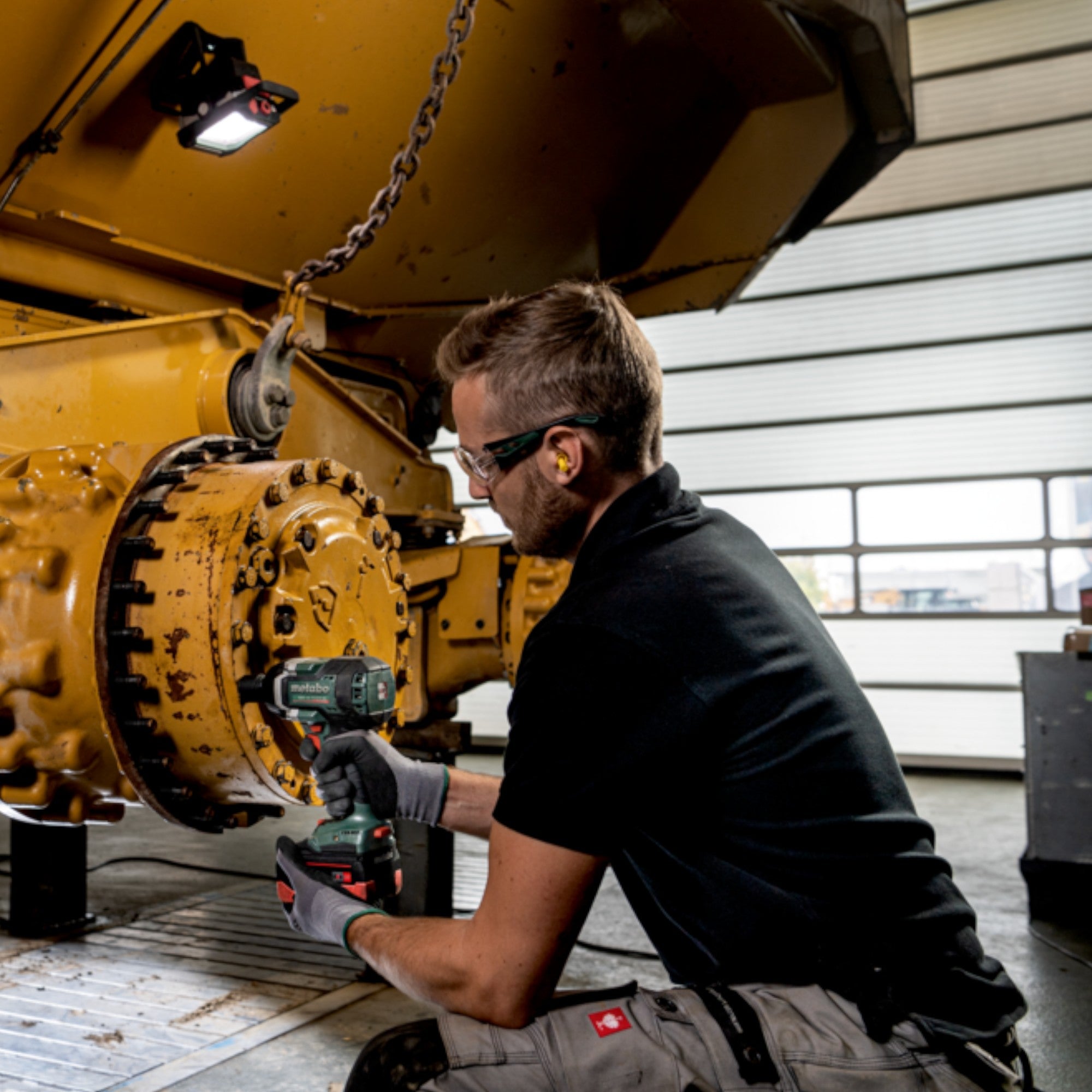 Die Firma Metabo bietet hier mit dem SSW 18 LTX 800 BL einen leistungsstarken Akku Schlagschrauber der mit seinen 800 Nm überzeugen kann. Dank des APS Modus ( Automatic Power Shift ) fallen die Schrauben und Muttern nach erfolgreichen Lösen nicht mehr herunter, da die Drehzahl nach dem Lösen automatisch reduziert wird. Außerdem verhindert der Modus beim Anziehen, dass die Schrauben und Muttern überdreht werden, da nach dem ersten Schlag automatisch abgeschaltet wird. Die Drehzahl lässt sich in 12 Stufen einstellen. die Maschine verbindet eine kompakte Bauform mit einer hohen Drehzahl und dennoch rückschlagarmen Arbeiten. Der bürstenlose Motor erlaubt zum einen eine kompaktere Bauweise und erhöht zudem die Langlebigkeit der Maschine indem der Verschleiß verringert wird. Dank der integrierten LED Leuchte hat man immer einen perfekten Blick auf die Arbeitsfläche. Metabo verbindet eine lange Tradition zu Werkzeugen aller Art, darüber hinaus ist Metabo Mitglied im CAS Konzern und besitzt somit eine breite Palette an kompatiblen Geräten und Akkus anderer Hersteller.