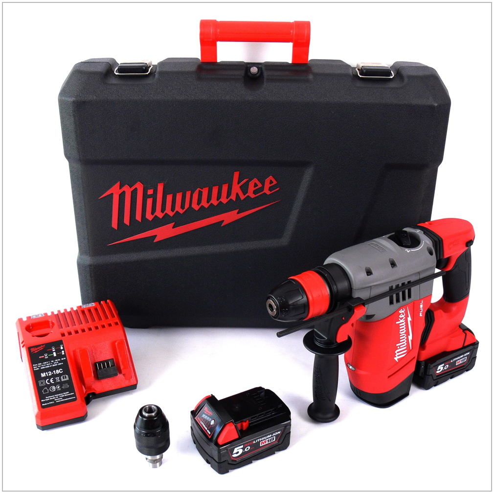 Milwaukee M18 CHPX-502C FUEL Perforateur-burineur sans fil, Brushless + 2x Batteries 5 Ah + Chargeur + Coffret