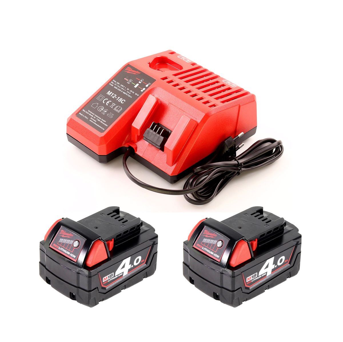 - 1x chargeur de batterie universel Milwaukee M12-M18C pour batteries Li-ion 12, 14 et 18 volts (4932352959)