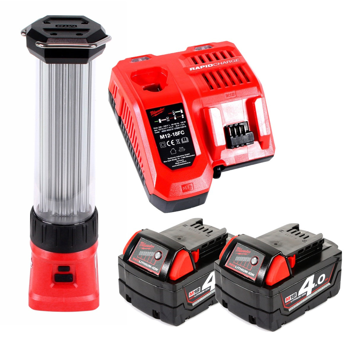 Milwaukee M18 LL-402C Lanterne de chantier sans fil LED 18 V Li-Ion + 2 x Batteries 4,0 Ah + Chargeur