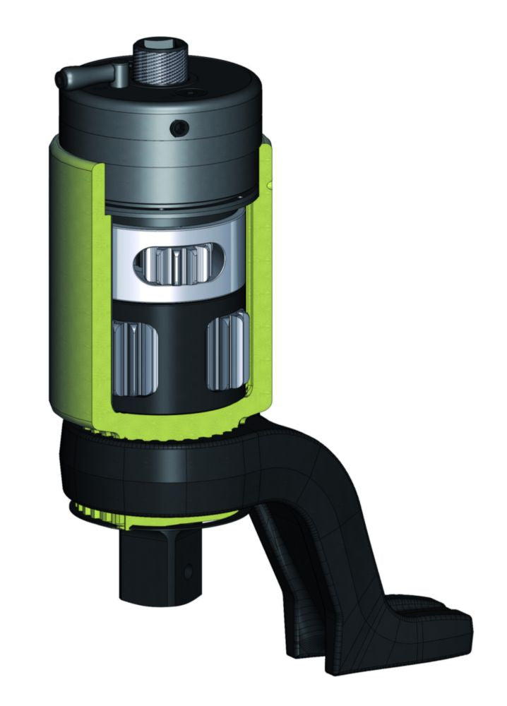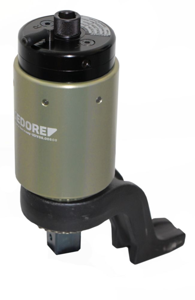 mécanique de serrage, Multiplicateur de couple à commande manuelle pour le serrage contrôlé des vis et le desserrage des raccords - engrenage planétaire à deux étages - boîtier en aluminium haute performance - modèle 4000 881 693 avec sécurité anti-retour pour un fonctionnement plus efficace et plus sûr - avec sécurité de surcharge non destructive "Slipper" pour protéger l'engrenage - rotation à droite et à gauche - avec bras de réaction coudé en forme de Z en acier forgé au chrome-vanadium - possibilité d'équipement ultérieur en option avec bras de réaction droit en forme de L avec carré de réaction réglable en alliage léger (4000 881 694 - ne fait pas partie de la livraison) - précision : meilleure que ± 3 % de tolérance - à actionner avec une clé dynamométrique (ne fait pas partie de la livraison) - carré de sortie avec alésage pour douilles de vissage à force avec goupille et bague de sécurité