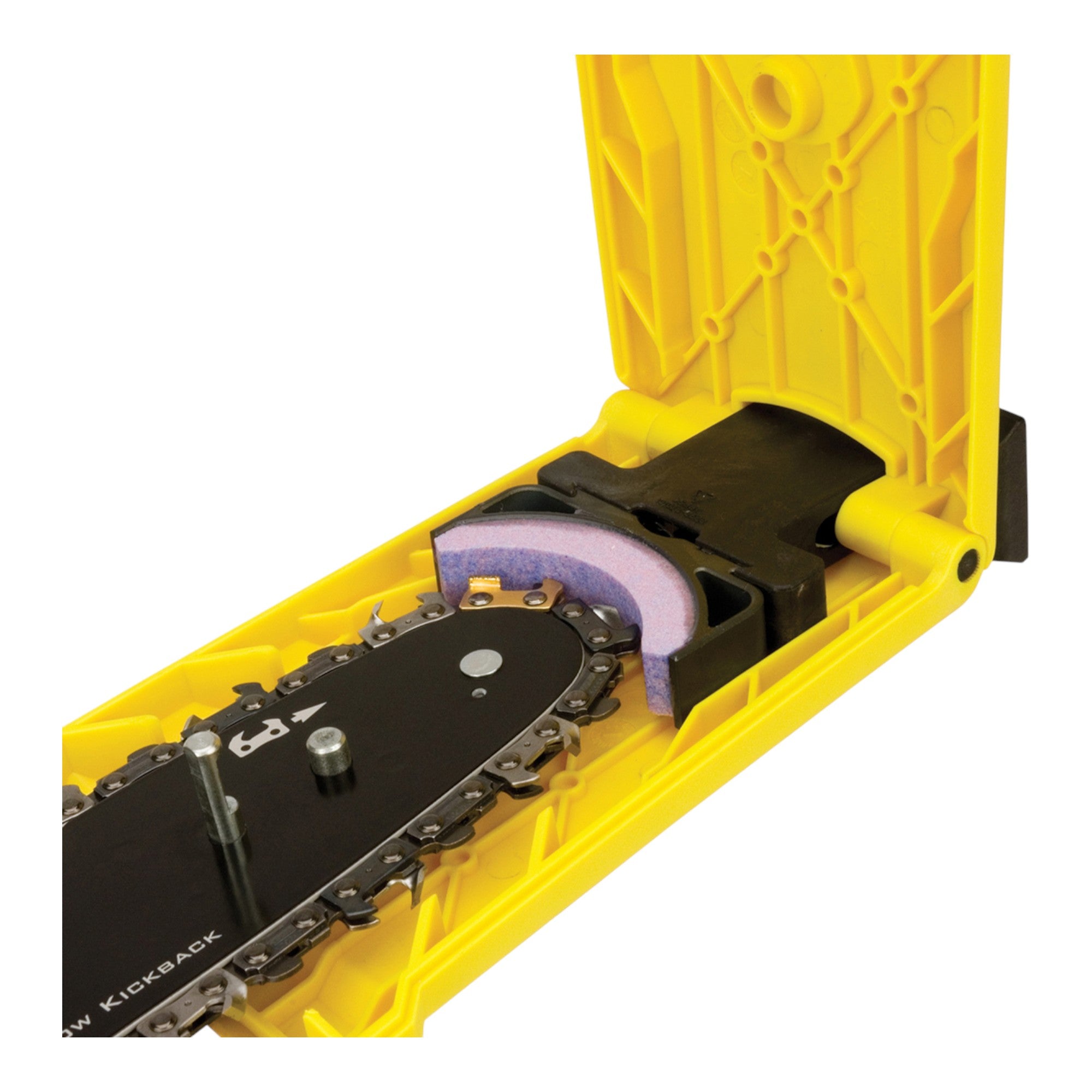 Mit dem PowerSharp®-System schärfen Sie Ihre Kette direkt auf der Säge – schnell, einfach und präzise. Das Set enthält eine spezielle Führungsschiene sowie das PowerSharp-Schärfgerät zur Anwendung direkt auf der Schiene. In nur drei Sekunden wird eine stumpfe Kette wieder scharf – ganz ohne aufwendiges Nachschleifen. Das System überzeugt durch seine robuste und tragbare Bauweise und ist für eine Teilung von 3/8" Niederprofil mit .050" / 1,3 mm Standardstärke geeignet. Es ist kompatibel mit zahlreichen Modellen führender Marken wie Craftsman, Cub Cadet, Dolmar, Echo, Efco, Homelite, Husqvarna, John Deere, Jonsered, Makita, Olympyk (Oleo-Mac), Poulan/Poulan Pro, Power Pruner/Echo Power Pruner und Redmax.