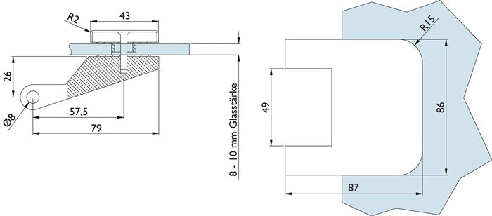 Paumelle pour porte en verre 6325-20 ( 3000253950 ) métal léger couleur inox pour 3 pièces