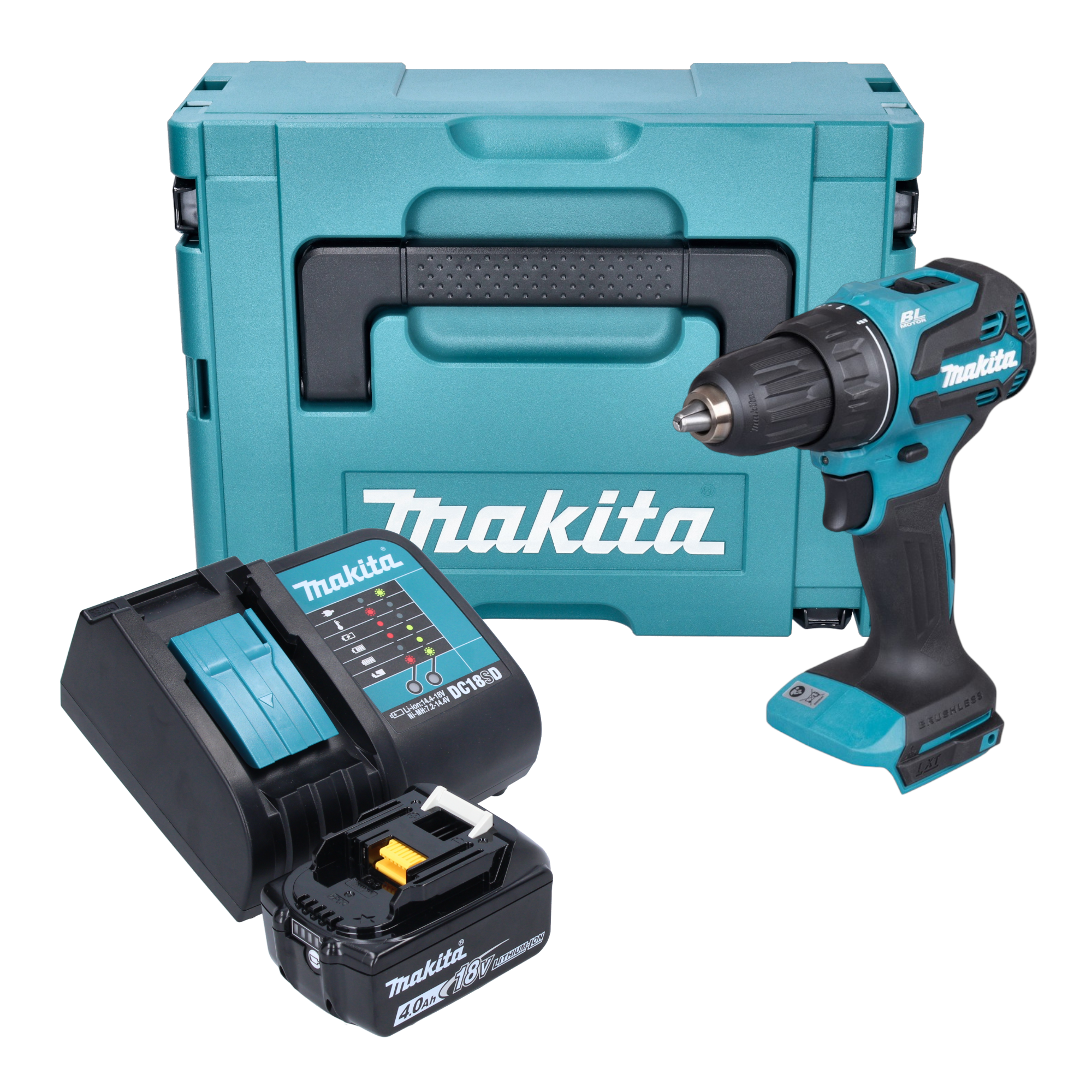Perceuse-visseuse sans fil Makita DDF 490 SM1J 18 V 65 Nm 1/2" Brushless + 1 batterie 4,0 Ah + chargeur + Makpac