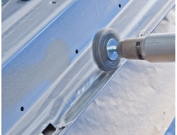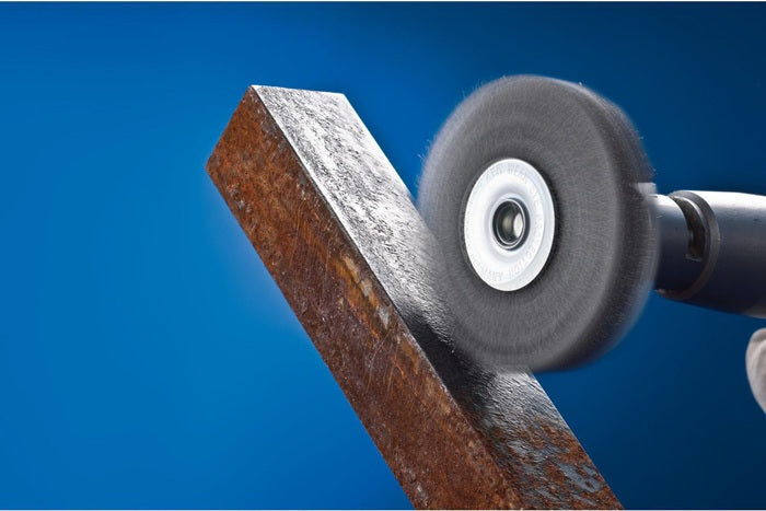 Pour le nettoyage, le dérouillage, le lissage, le nettoyage des cordons de soudure, l'ébavurage léger et l'élimination de la corrosion et des vernis - Matériau de garniture Le fil d'acier dispose d'une grande résistance à la traction et à la flexion alternée - garantit une usure optimale du fil ainsi qu'une longue durée de vie, même dans les applications de brossage extrêmes Le fil d'acier résiste à des températures allant jusqu'à 300 °C. Ø de la tige 6 mm