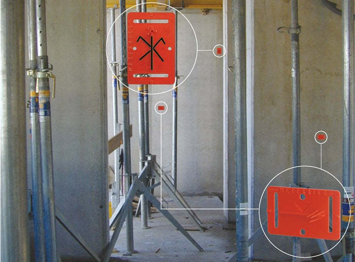 avec pinceau - rouge - profondeur d'application 6 mm - pour la protection durable du tracé du mètre ainsi que des hauteurs et des axes - plaquettes de tracé du mètre selon les types d'enduits, le bord supérieur du crayon est le tracé du mètre - les plaquettes restent sous l'enduit comme preuve