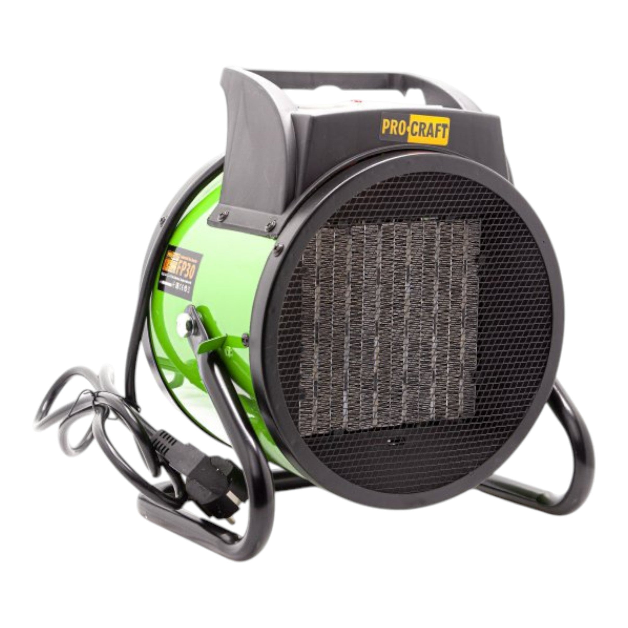 Procraft FP30 Aérotherme électrique Chauffage 3 kW 3 niveaux de puissance 25/1500/3000 W pour atelier, cave, chantier etc. y compris protection contre la surchauffe