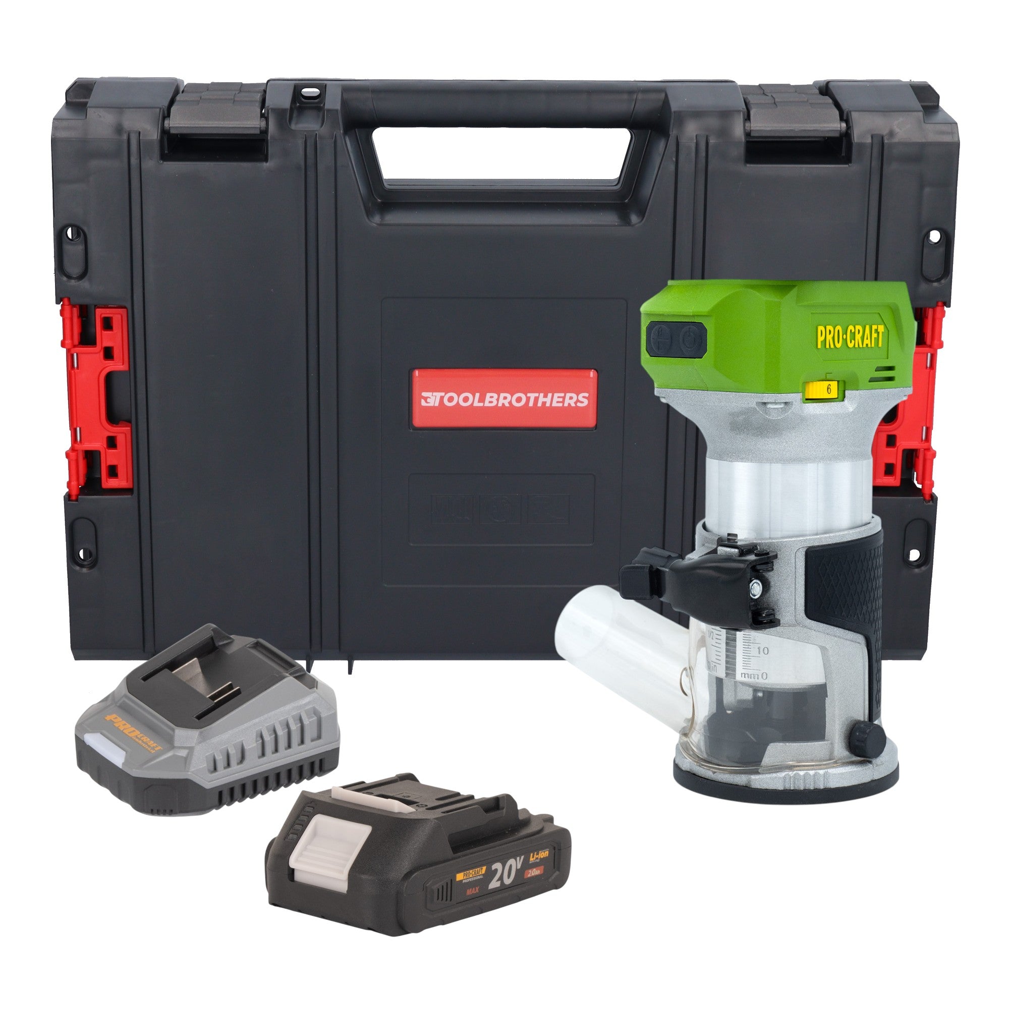 Procraft POB24bb Fraiseuse multifonctions sans fil 20 V 6 / 8 mm Brushless + 1x batterie 2,0 Ah + chargeur + RHINO Toolcase