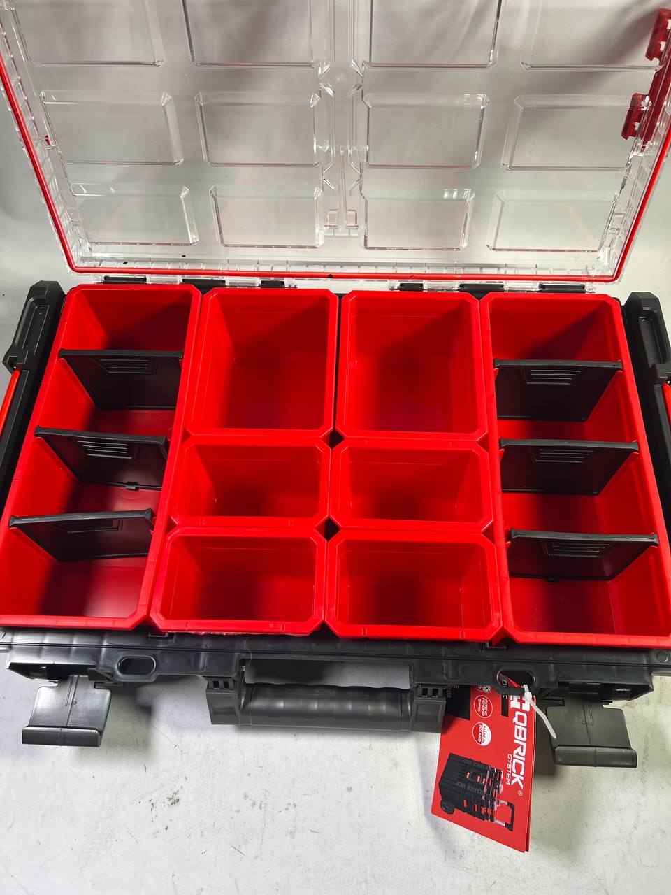 Qbrick System ONE Organizer XL est le plus grand modèle de la famille des organiseurs modulaires, qui peuvent être combinés entre eux, mais aussi avec toutes les commodes de la ligne ONE. L'organiseur XL est équipé de deux nouveaux seaux longs, mesurant chacun plus de 30 cm. L'organiseur contient également 2 seaux moyens et 4 petits seaux. La version 2.0 de la ligne de produits ONE est une nouvelle génération de boîtes à outils et d'organiseurs au design renforcé. L'adaptation supplémentaire des boîtiers aux inserts filetés M8 permet d'adapter le système aux besoins de l'utilisateur.