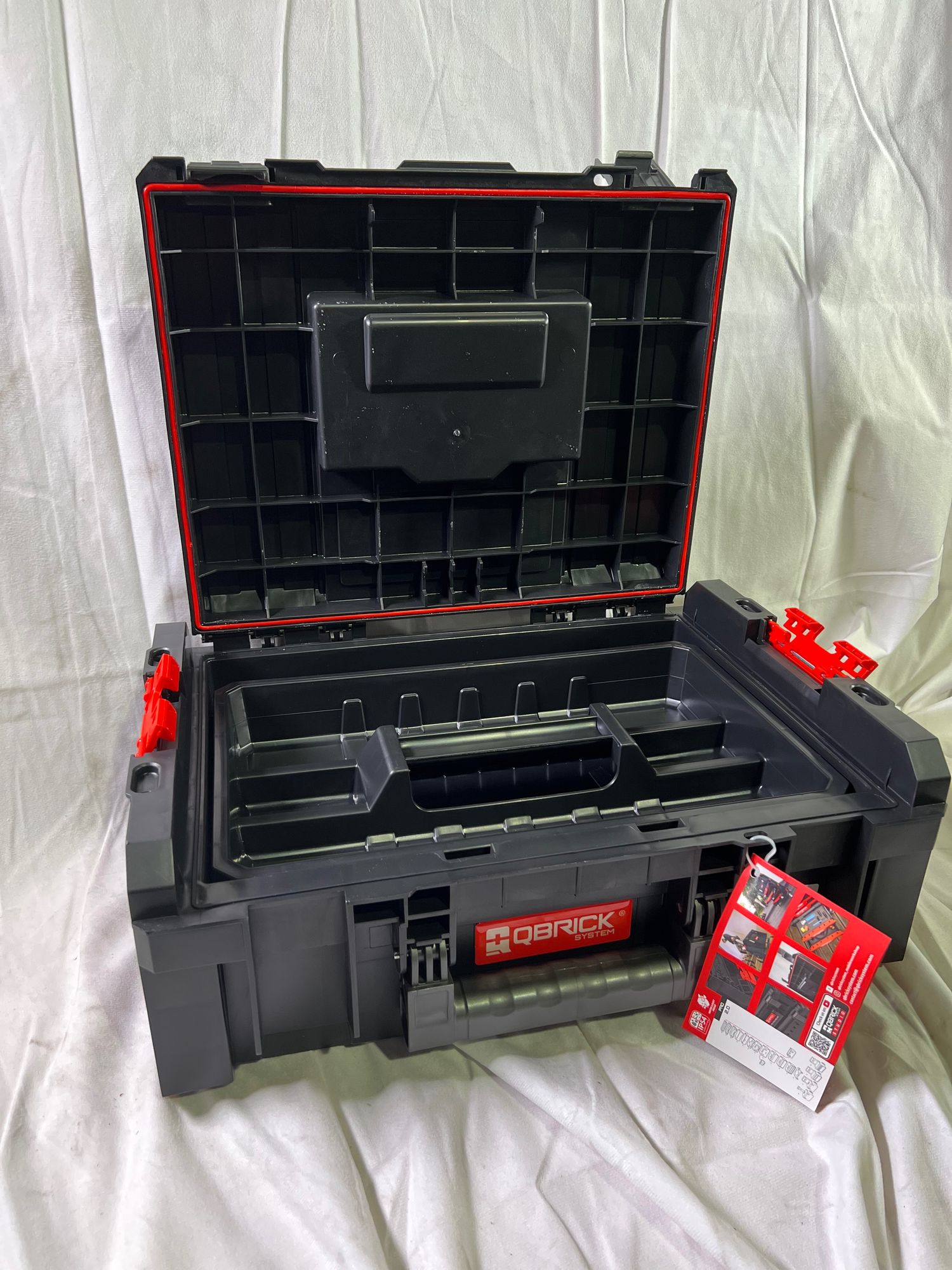 Qbrick System PRO Technician Case – ist eine mittelgroße modulare Truhe aus der PRO-Linie, die bereits standardmäßig mit einer geräumigen Ablage und einer im Deckel integrierten flexiblen Dichtung ausgestattet ist, die ihre hohe Beständigkeit gegen das Eindringen von Staub und Wasser gewährleistet. Die Größe und der modulare Aufbau des Technikerkoffers machen ihn zum perfekten Aufbewahrungs- und Transportkoffer für eine Vielzahl von Elektrowerkzeugen.