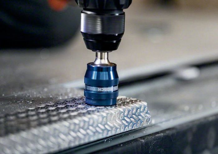 longue durée de vie lors de la découpe de trous dans l'acier inoxydable - se compose d'un seul cylindre en métal tourné - durée de vie extrême - dents en carbure - pour la découpe des aciers les plus durs - à utiliser avec l'adaptateur à serrage rapide Power Change Plus