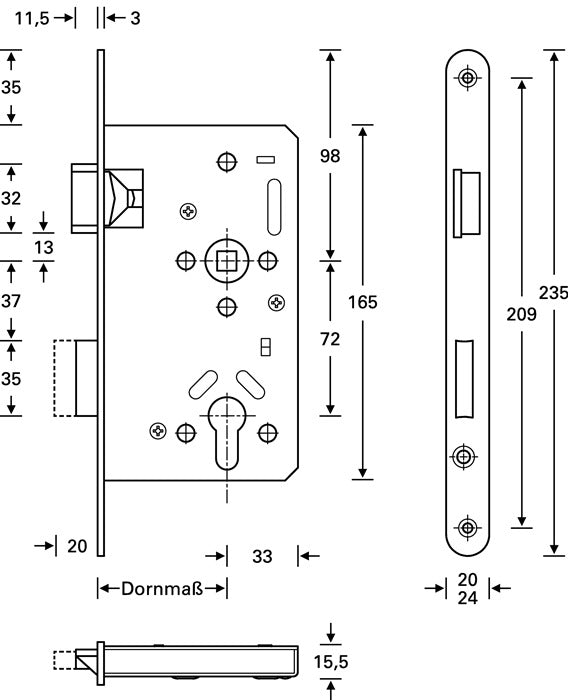 SSF Serrure à encastrer anti-panique Série 20 APE ( 3000252877 ) Fonction anti-panique E arrondie Acier inoxydable