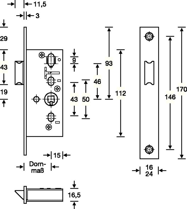 selon DIN 18251-2 - boîtier de serrure en acier fermé en haut et en bas - à bord - têtière en acier inoxydable - longueur de têtière 170 mm - carré 8 mm - utilisable DIN gauche / droite - pêne demi-tour en zinc moulé sous pression - sans gâche
