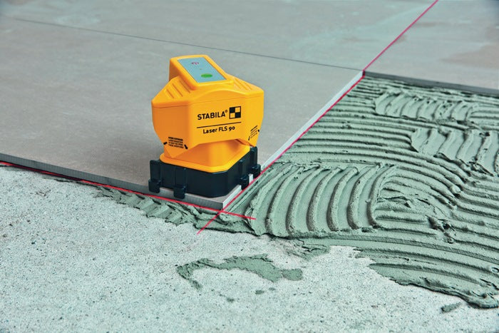 pour carreleurs, poseurs de sols et plaquistes - travail rapide et propre lors de la pose de carrelage, parquet, stratifié, moquette ou PVC - lignes laser droites à 90° par simple pression sur un bouton - socle réversible avec griffes de positionnement pour la pose de carrelage