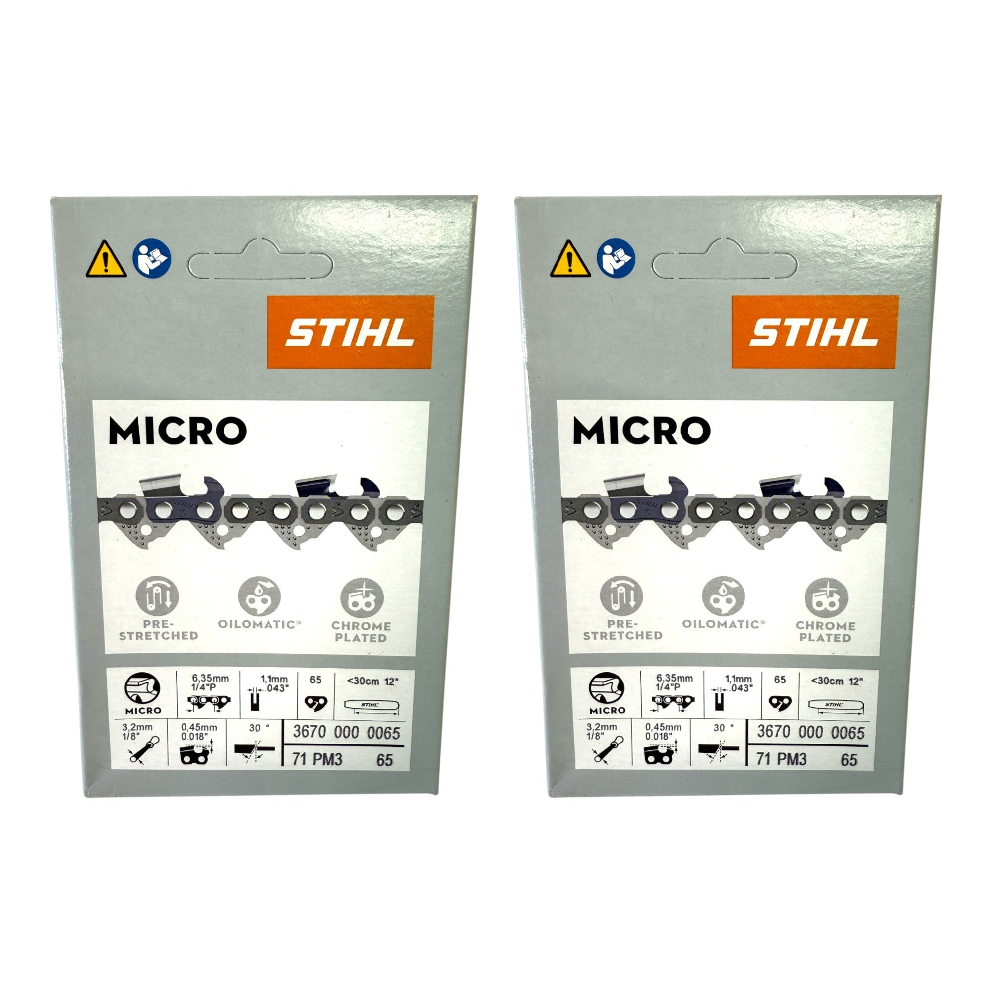 Stihl 2x 1/4" Picco Micro 3 (PM3) chaîne de scie 30 cm 1/4" P 1,1 mm 65 TG 2 pièces ( 2x 36700000065 )