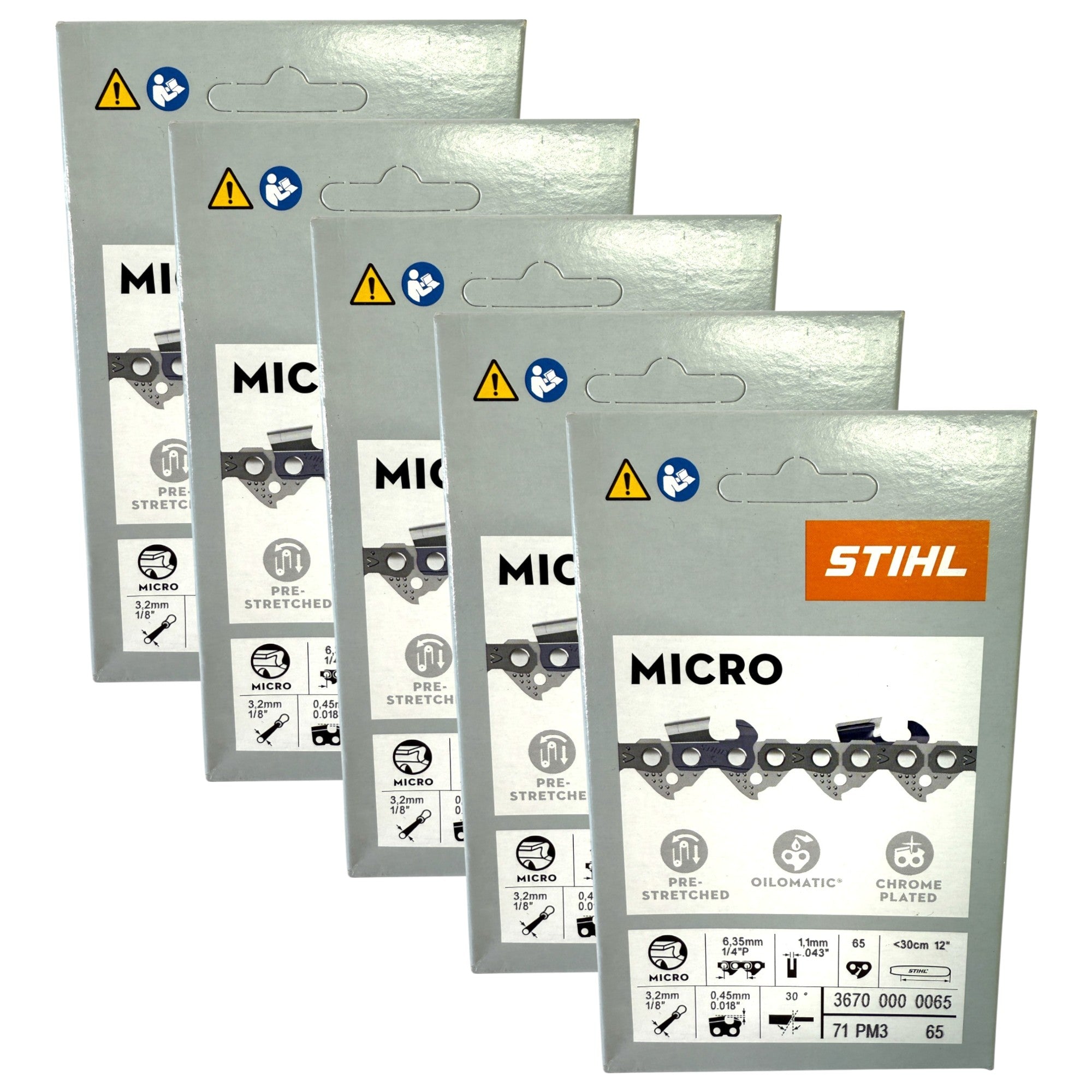 Stihl 5x 1/4" Picco Micro 3 (PM3) chaîne de scie 30 cm 1/4" P 1,1 mm 65 TG 5 pièces ( 5x 36700000065 )