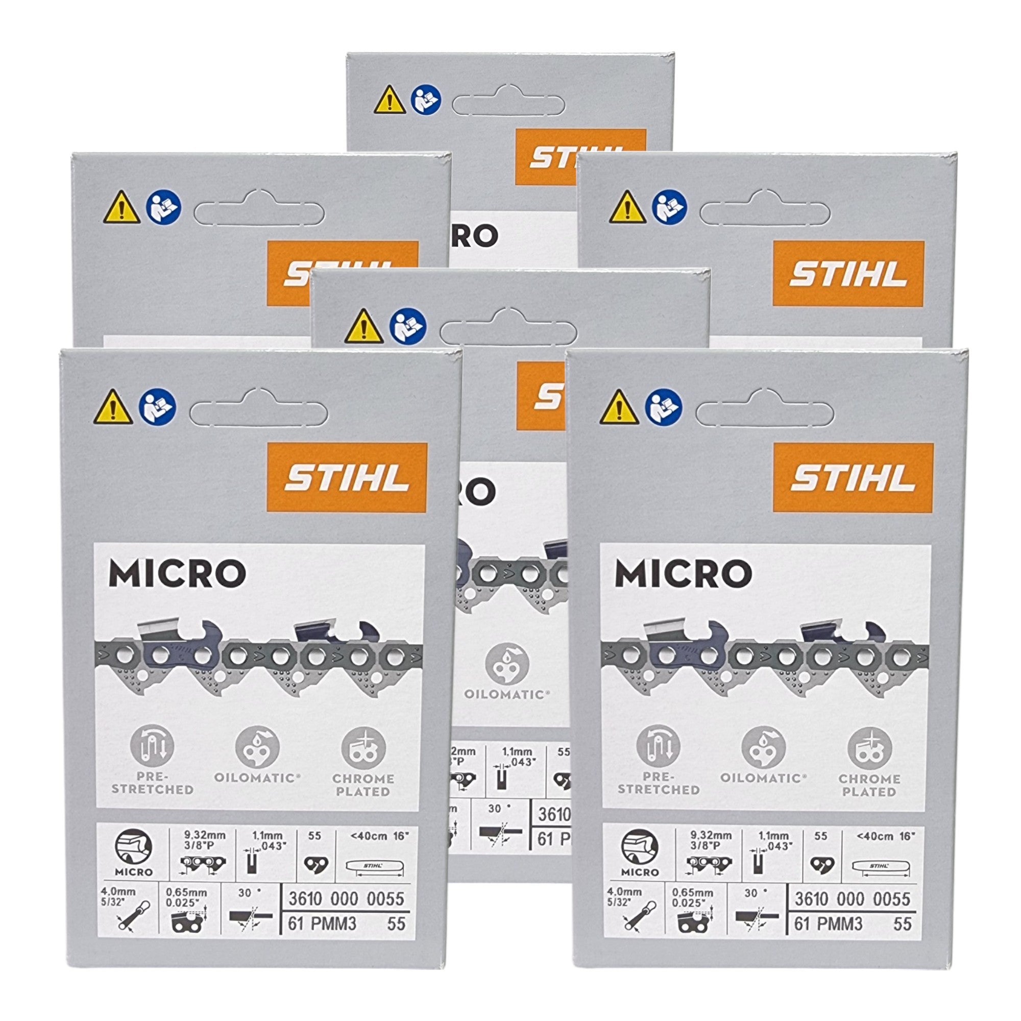 Stihl 6x 3/8" Picco Micro Mini 3 (PMM3) chaîne de scie 40 cm 3/8" P 1,3 mm 55 TG 6 pièces ( 6x 36100000055 )