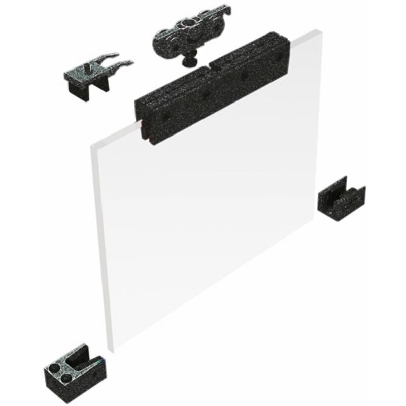 Kit complet - pour portes coulissantes en verre à un vantail jusqu'à 80 kg de poids de vantail et 8 et 10 mm d'épaisseur de verre (ESG) - appareils à roulettes avec roulement à billes et vis de support galvanisée, M8x35mm Contenu : 2x appareils à roulettes HELM 73, 2x pinces à verre HELM 180 mm (8/10 mm), 2x butoirs HELM 65 P, 1x HELM SmartGuide G (8-12,76 mm) testé selon DIN 1527:2013 200.000 cycles Rail de roulement 53/73 à commander séparément
