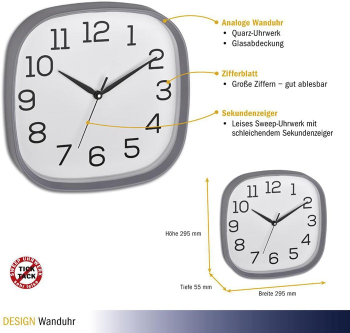 TFA Dostmann Horloge murale ( 9000486867 ) Horloge à quartz plastique gris Chiffres, analogique