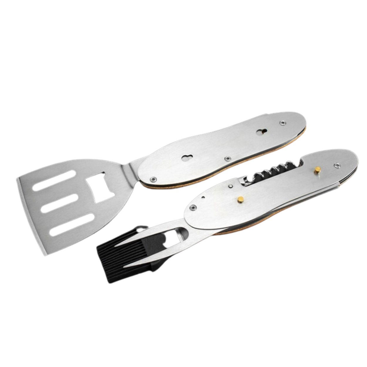 Toolbrothers Outdoor Multitool Grill, ustensiles de barbecue en acier inoxydable avec fourchette, cuillère à barbecue, grille à viande, décapsuleur et tire-bouchon 5 pcs.