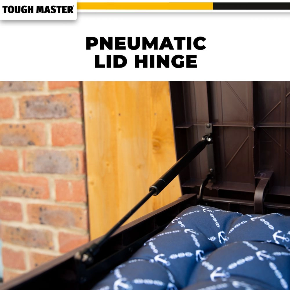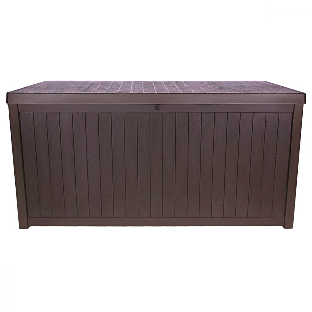 Boîte de rangement en plastique TOUGH MASTER 430L avec charnières, poignée latérale, couvercle verrouillable, résistant à l'eau et aux intempéries avec aspect bois (TM-SBW43H)