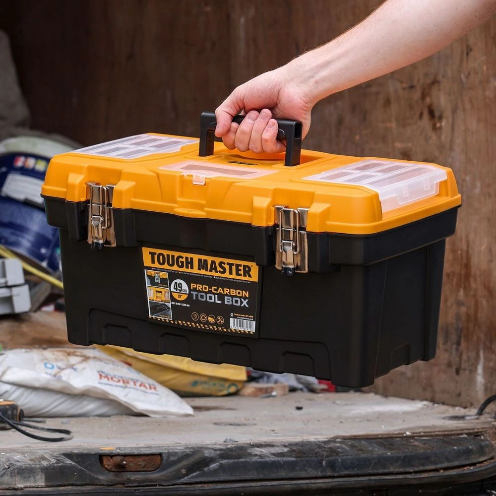 Boîte à outils en plastique TOUGH MASTER, taille moyenne, 26 x 49 x 24,6 cm, avec étagère, compartiments amovibles, compartiment intérieur, serrure ( UPT-4006 )