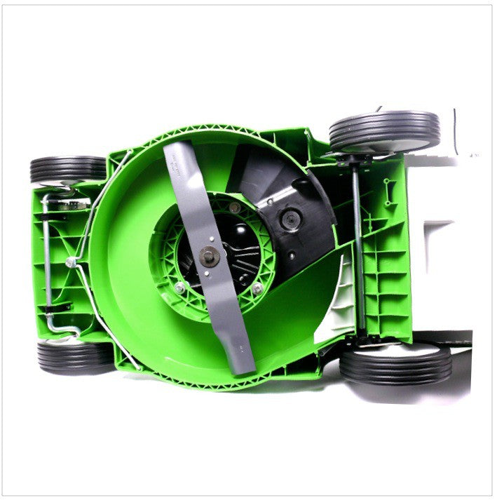 - La lame éolienne intégrée crée un fort flux d'air qui soulève l'herbe avant de la couper et la souffle avec force dans le panier collecteur.