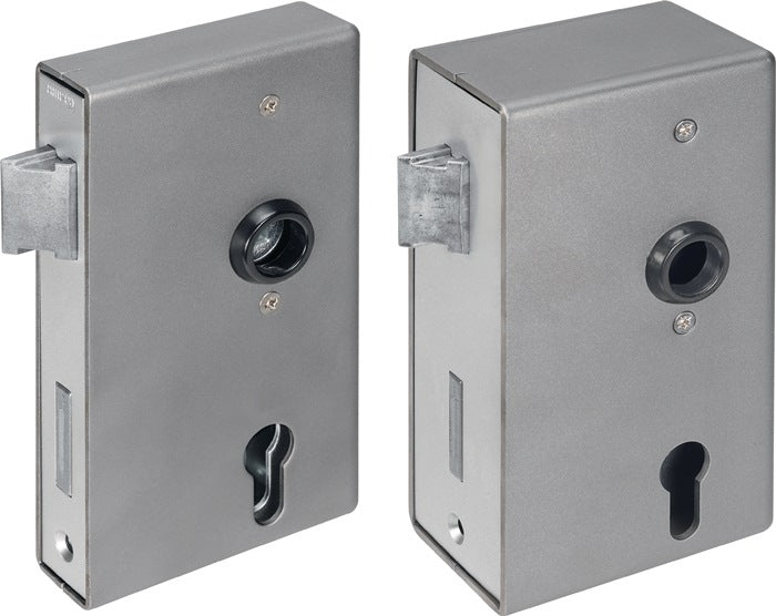 avec serrure galvanisée (142U) - nue - utilisable à gauche et à droite grâce à la tête de pêne réversible - prévue pour cylindre profilé ou BB (avec kit d'adaptation) - avec changement - pêne dormant en zinc moulé sous pression - dimension de broche 60 mm - distance 72 m - carré 8 mm - 2 tours - pêne demi-tour dépassant de 3 mm - accessoires : - 2 rosaces de poignée 18 mm - 4 vis, acier inoxydable