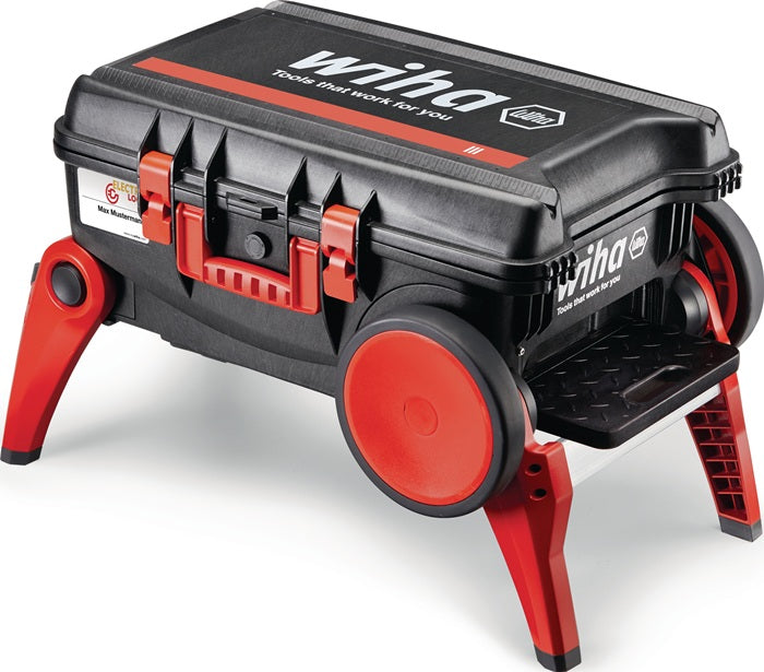assortiment complet et pratique dans une mallette de protection robuste - des amortisseurs à gaz intégrés maintiennent le couvercle équipé dans la position souhaitée - mallette étanche à la poussière et à l'eau avec valve d'équilibrage de pression - empilable, sur roulettes - avec chariot intégré - pieds dépliables pour une position de prélèvement surélevée et un marchepied antidérapant stable pour les travaux en hauteur - grandes roues pour un déplacement confortable sur les marches d'escalier et les terrains difficiles - encoche en V dans le couvercle pour aider au sciage Contenu : Couper/découper 1 coupe-câble, longueur 210 mm* 1 pince coupante diagonale, longueur 160 mm* Gainer/abaisser/sertir 1 outil à dénuder pour câbles ronds de 0,5 - 6 mm² Ø Alimenter/tenir 1 pince plate, longueur 200 mm* 1 pince universelle, longueur 180 mm* Visser/serrer 1 tournevis avec manche SoftFinish® (slimFix) pour vis à fente Gr. 3,5 x 100 / 4,0 x 100 / 5 x 125 mm* 1 tournevis avec manche SoftFinish® (slimFix) pour vis à empreinte cruciforme (PH) Gr. 1 x 80 / 2 x 100 mm* 1 tournevis avec manche SoftFinish® (slimFix) pour vis PlusMinus à empreinte cruciforme (SL/PZD) Gr. 2 x 100 mm* 1 jeu de clés mâles dans un support ProStar, avec tête sphérique hexagonale, tailles 1,5 / 2 / 2,5 / 3 / 4 / 5 / 6 / 8 / 10 mm 1 assortiment d'embouts 31 pièces, PH, PZD, Torx avec support universel magnétique 1 jeu d'outils slimVario® electric 19 pièces* 1 tournevis avec magasin d'embouts PocketMax® avec 4 slimBits* Autres outils 1 testeur de tension et de continuité 12 - 1.000 V AC, CAT IV 1 mètre pliant d'électricien, longueur 2 m 1 niveau à bulle d'électricien, longueur 40 cm 1 marteau d'électricien (poids de la tête 300 g) *VDE isolé