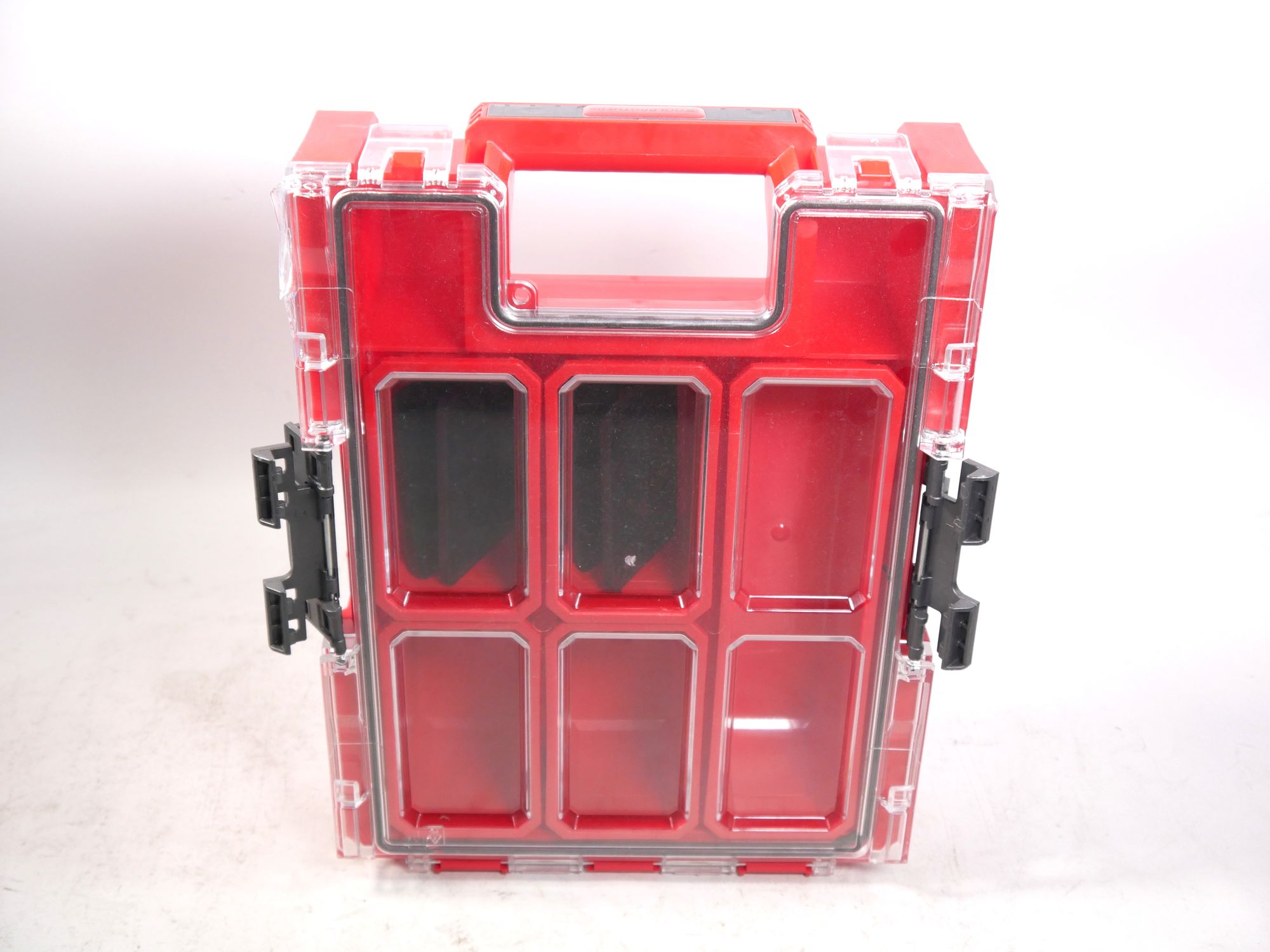 RED ULTRA HD est une édition spéciale de produits Qbrick System ONE en plastique ultra-résistant, qui se caractérise par une résistance exceptionnelle aux dommages mécaniques. Les tests d'impact effectués confirment sa durabilité exceptionnelle, même dans des conditions inférieures à 0 C. Qbrick System ONE Organizer M est le plus petit modèle de la gamme d'organiseurs modulaires ONE, qui peuvent être combinés dans de nombreuses configurations. L'Organizer M est doté du système breveté Easy Access qui, grâce à des connecteurs spéciaux, permet d'accéder facilement à chaque module sans avoir à les ouvrir, ce qui améliore considérablement l'ergonomie de travail. L'Organizer M est équipé en standard de 5 seaux pour les petits accessoires, dont 4 petits et un long pour le rangement et le transport des éléments de votre atelier. En outre, le contenu de l'organiseur est protégé contre la pénétration d'eau et de poussière par un joint flexible placé dans le couvercle en polycarbonate.