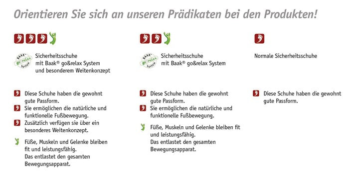 selon DIN EN ISO 20345 - S3 SRC HRO WR - cuir pleine fleur, robuste, cuir de vachette LWG respirant - doublure BAAKdry® - membrane imperméable et respirante - système Heel-Safety - embout flexible en acier Baak® - élément de couplage en H intégré pour une flexion adaptée au pied - semelle intermédiaire anti-perforation en Kevlar® - système Baak® go&relax - semelle intermédiaire en PU à haute capacité d'absorption d'énergie - semelle intérieure Baak® ESD Softstep+ - résiste brièvement à une température de 300 °C - antidérapante, résistant à de nombreux acides et bases, résistant aux coupures - selon DGUV 112-191 - largeur 11 sur demande également à partir de la taille. 38 et jusqu'à la taille 48