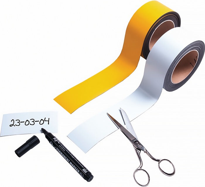 pour le marquage des étagères, des conteneurs, etc. - rubans magnétisés - inscriptibles et découpables individuellement - épaisseur du ruban 0,9 mm - longueur du ruban 10 m - livraison en rouleaux