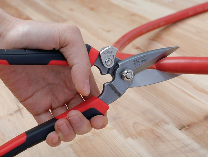 Lame et manche en une seule pièce - Forgé - Lame avec denture pour un travail antidérapant - Poignée ERGO pour un travail moins fatigant - Lames chromées sablées pour une protection contre la corrosion - Coupe de l'acier laminé à froid jusqu'à 0,6 mm d'épaisseur - Emballage libre-service