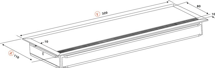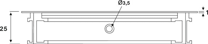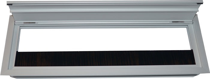 avec couvercle à charnière droit · joint à brosse noir · hauteur 25mm · aluminium anodisé argent · dimensions de fraisage 103 x 313 mm