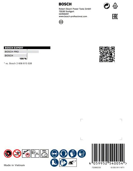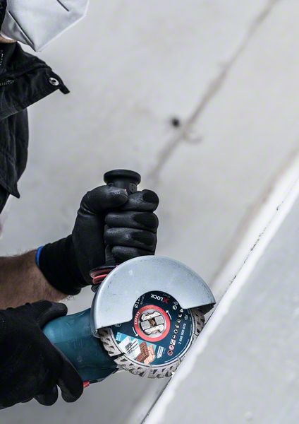 Grâce à la technologie Bosch Diamond, le disque à tronçonner diamanté multi-matériaux Bosch EXPERT offre un tranchant très résistant pour la coupe de divers matériaux de construction. Le frottement sur les surfaces latérales de 12 mm de hauteur des segments a été réduit afin de minimiser l'usure sur les côtés. Les segments sont soudés au laser pour assurer une connexion solide avec le noyau en acier. Grâce au système de changement rapide X-LOCK, le disque se monte sur la meuleuse d'angle en un clic. Le plus grand avantage du système X-LOCK est qu'il peut toujours être monté et utilisé sur toutes les meuleuses d'angle standard avec écrous de serrage. Tout cela permet au disque à tronçonner diamanté multi-matériaux EXPERT de durer jusqu'à 4 fois plus longtemps qu'un disque à tronçonner diamanté multi-matériaux standard. La gamme Bosch EXPERT comprend les accessoires les plus innovants pour les outils électriques avec des avantages de performances éprouvés pour permettre à chaque artisan professionnel de travailler de manière extrêmement efficace. Durée de vie extrêmement longue, précision maximale, travail à vitesse maximale et ponçage sans poussière : tout cela est possible avec Bosch EXPERT.