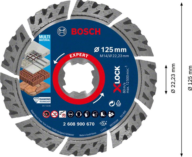 - 1x Bosch EXPERT Multi Disque à tronçonner diamanté Material 125 x 22,23 x 2,4 mm X-LOCK