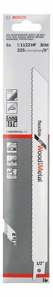 Bosch Flexible for Wood and Metal S 1122 HF Lames de scie sabre 225mm, 5 pcs. (2608656021)