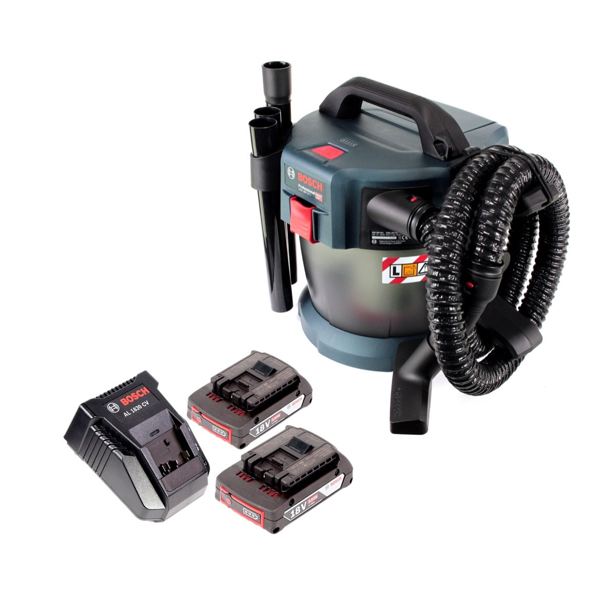 Aspirateur eau et poussière Bosch GAS 18V-10 L Professional Li-Ion + 2 batteries GBA 2,0 Ah + chargeur AL 1820 CV