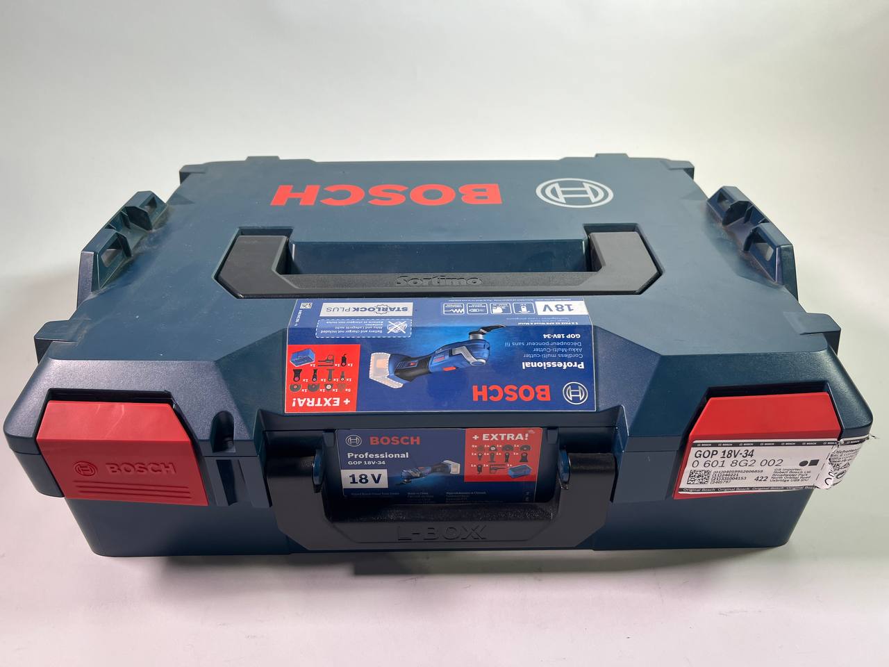 Bosch GOP 18V-34 Professional Cutter multifonctions sans fil 18 V Starlock Plus ( 06018G2002 ) + 17 pces accessoires + L-Boxx - sans batterie, sans chargeur