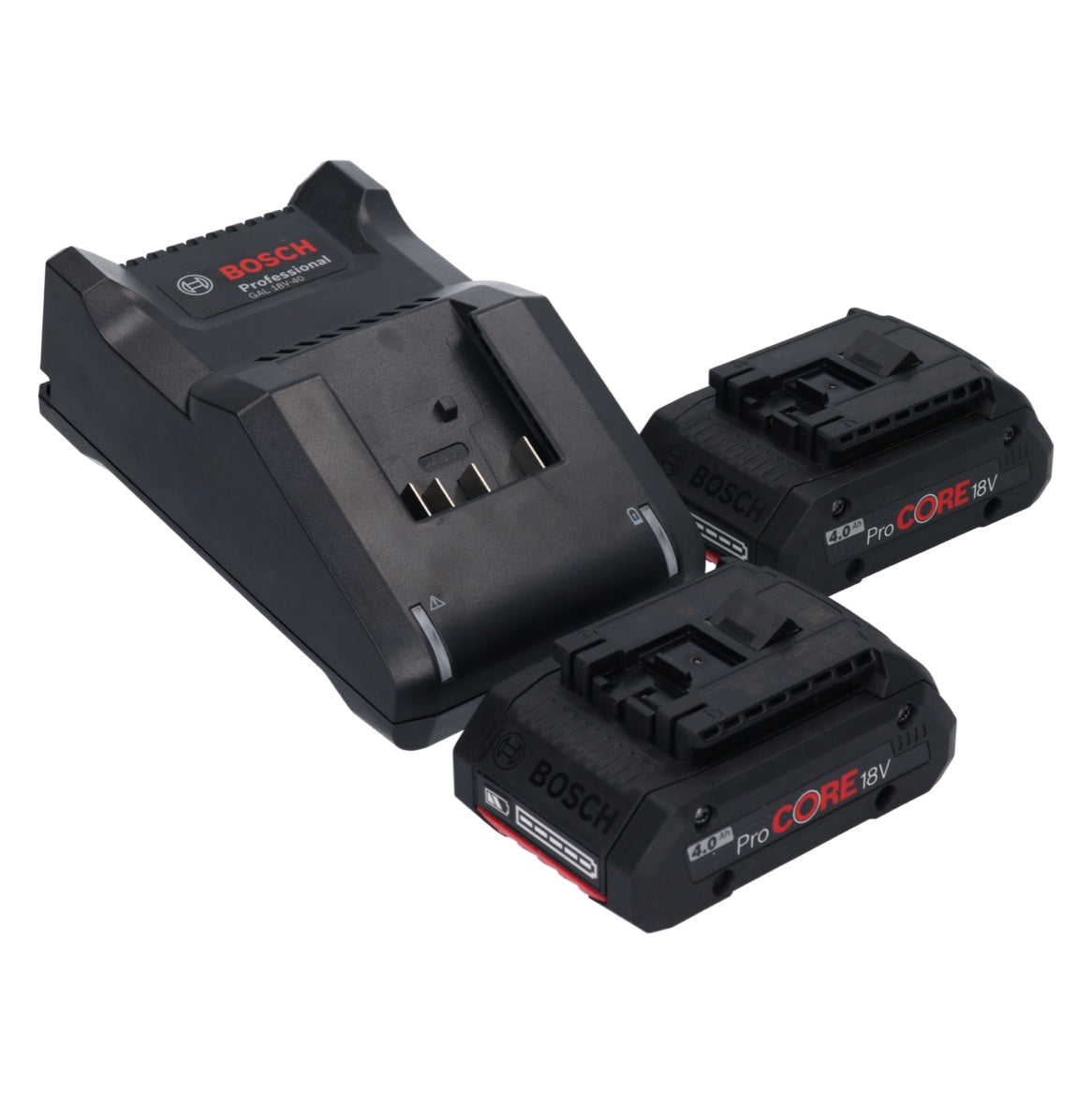 - 2x Batteries Bosch GBA 18 V 4,0 Ah ProCORE (1600A016GB)