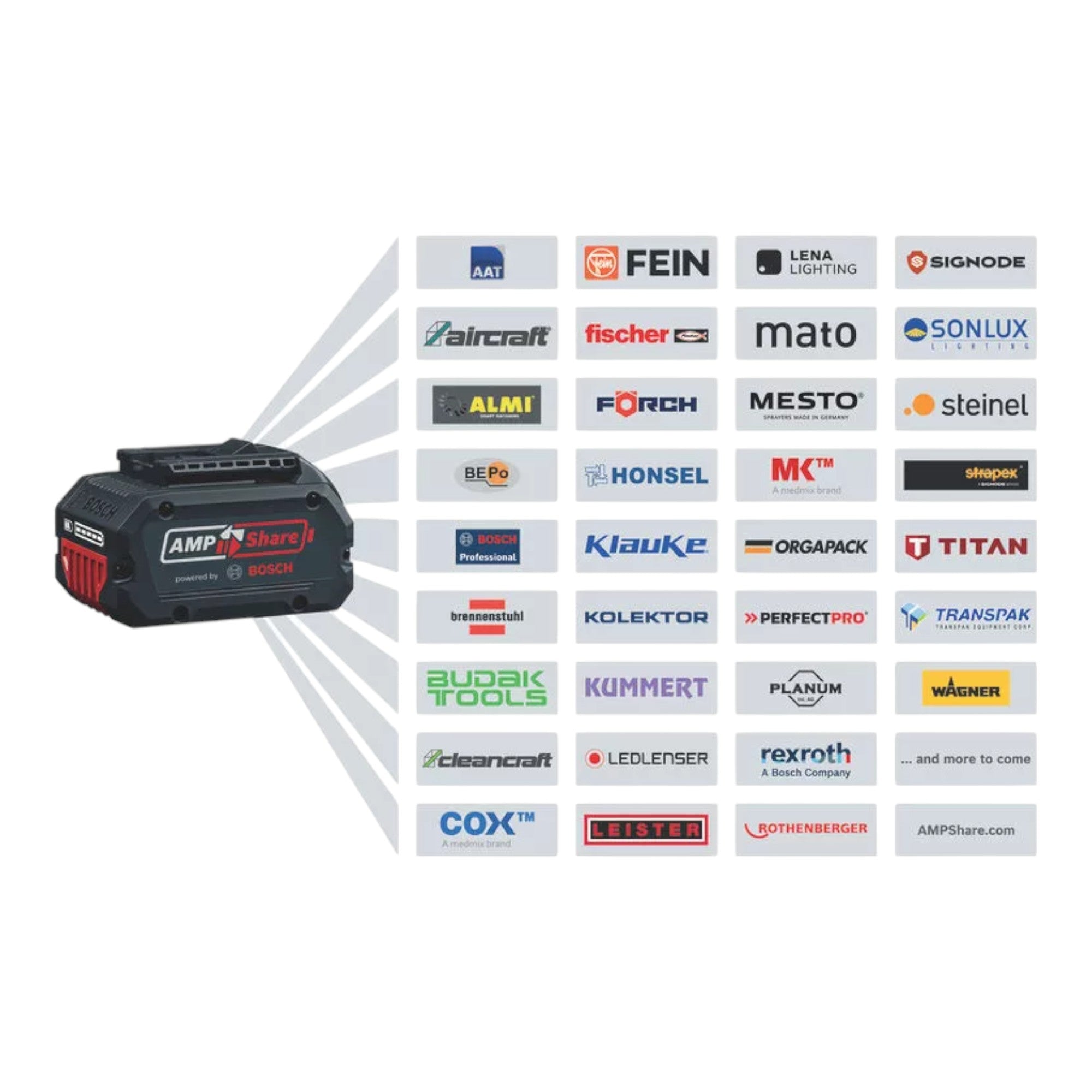 La batterie GBA 5,0 Ah Bosch de 18 volts a une autonomie supérieure de 25% à celle du modèle 4,0 Ah (de Bosch). La technologie CoolPack intégrée assure une durée de vie jusqu'à 100% plus longue par rapport aux batteries sans CoolPack. Grâce au système Bosch flexible Power, la batterie est compatible avec tous les appareils de la classe 18 volts. La batterie est extrêmement robuste, ce qui fait que même une chute de plusieurs mètres sur un sol dur n'affecte pas son fonctionnement. Le GAL 18V-160 Professional de Bosch est un chargeur ultrarapide qui recharge tes outils électroportatifs sans fil rapidement et efficacement, évitant ainsi les frustrations liées aux chargeurs lents. Avec une vitesse de charge impressionnante, tu peux recharger complètement ta batterie ProCORE18V 8,0 Ah Professional en seulement 44 minutes. Le chargeur propose trois modes de charge pratiques : Standard, PowerBoost et Long Life, qui te permettent d'ajuster la puissance de charge en fonction de tes besoins. Le mode PowerBoost est idéal lorsque tu as besoin d'une charge complète rapide, tandis que le mode Long Life permet une charge plus douce, jusqu'à 80%, afin de prolonger la durée de vie de ta batterie. Une particularité du GAL 18V-160 est la technologie Active Air Cooling, qui fonctionne avec deux ventilateurs intégrés pour maintenir les batteries au frais pendant la charge. Ceci est particulièrement utile lorsque les batteries sont devenues chaudes suite à une utilisation prolongée. Le chargeur est non seulement compatible avec le système 18 V Bosch Professional, mais aussi avec l'alliance de batteries AMPShare, ce qui en fait un choix polyvalent pour différents appareils. L'affichage de l'état de charge est visualisé par cinq voyants LED qui indiquent à tout moment l'état exact de la charge, afin que tu saches toujours quand tes batteries sont prêtes à être utilisées. Avec le GAL 18V-160 Professional, ton flux de travail n'est pas perturbé et ta productivité reste élevée.