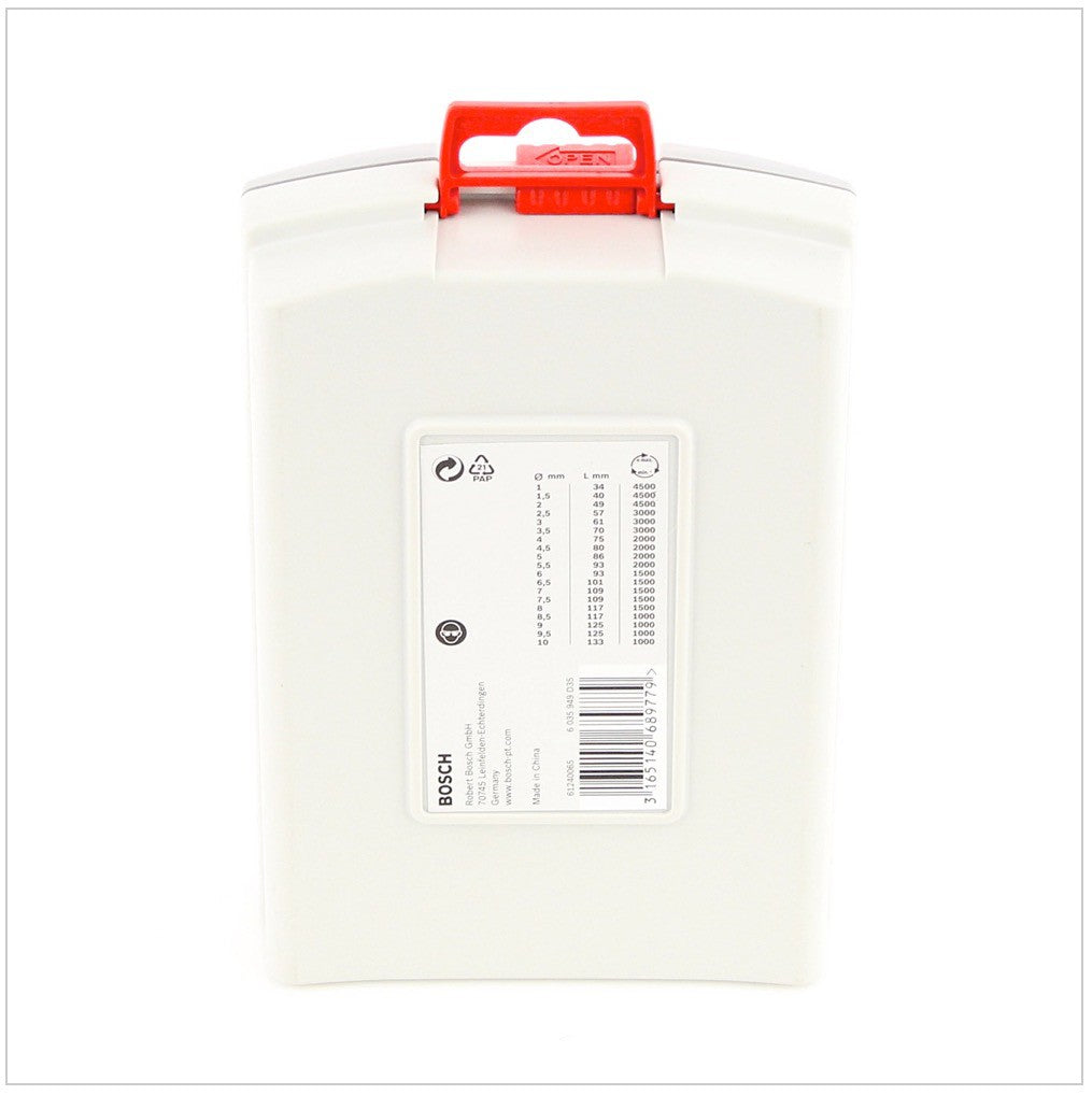 Le jeu de forets à métaux Bosch, composé de 19 forets d'un diamètre de 1 à 10 mm, couvre une large gamme de forets à métaux pour le bricoleur. Avec sa meulage à 135 degrés, la perceuse garantit un perçage sans problème à travers le métal.