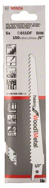 Bosch S 611 DF Heavy for Wood and Metal Lames de scie sabre 150mm, 5 pcs. (2608656258 )