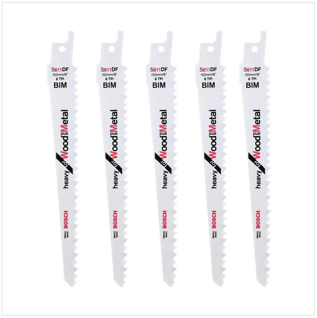 - 5x Bosch S 611 DF Heavy for Wood and Metal Lames de scie sabre 150mm (2608656259)