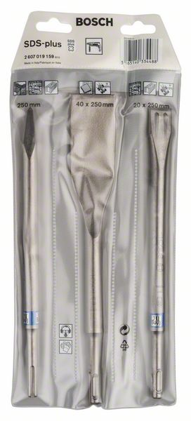 Bosch SDS-plus Set de burins: Burin plat + Burin pointu + Burin pour carrelage - auto-affûtant, longue durée de vie ( 2607019159 )