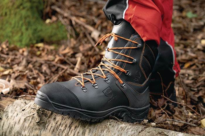selon EN ISO 20345 - S3 HRO CI HI SRC - EN ISO 17249 - protection contre le sciage : classe 2 (24 m/s) - hauteur de tige : env. 23 cm - largeur de la chaussure : 10,5 - Tige en cuir de haute qualité, col rembourré en textile CORDURA® avec fermeture flexible en néoprène - languette antipoussière rembourrée en cuir pleine fleur et textile CORDURA® - fermeture par lacets rapidesœillets et crochets - stabilisateur de talon - insert anti-coupure de haute qualité - doublure textile respirante et première textile - semelle intérieure amovible et antistatique - aide à l'enfilage sur la languette et le talon - sur-embout résistant à l'abrasion - embout acier anticorrosion extra large et semelle intermédiaire en tissu - semelle intérieure antistatique, semelle extérieure en caoutchouc nitrile profilé, résistante à l'abrasion et au glissement, résistante aux huiles et aux acides, résistante à la chaleur, sur demande également de la taille. 39 à 50 disponibles sur demande