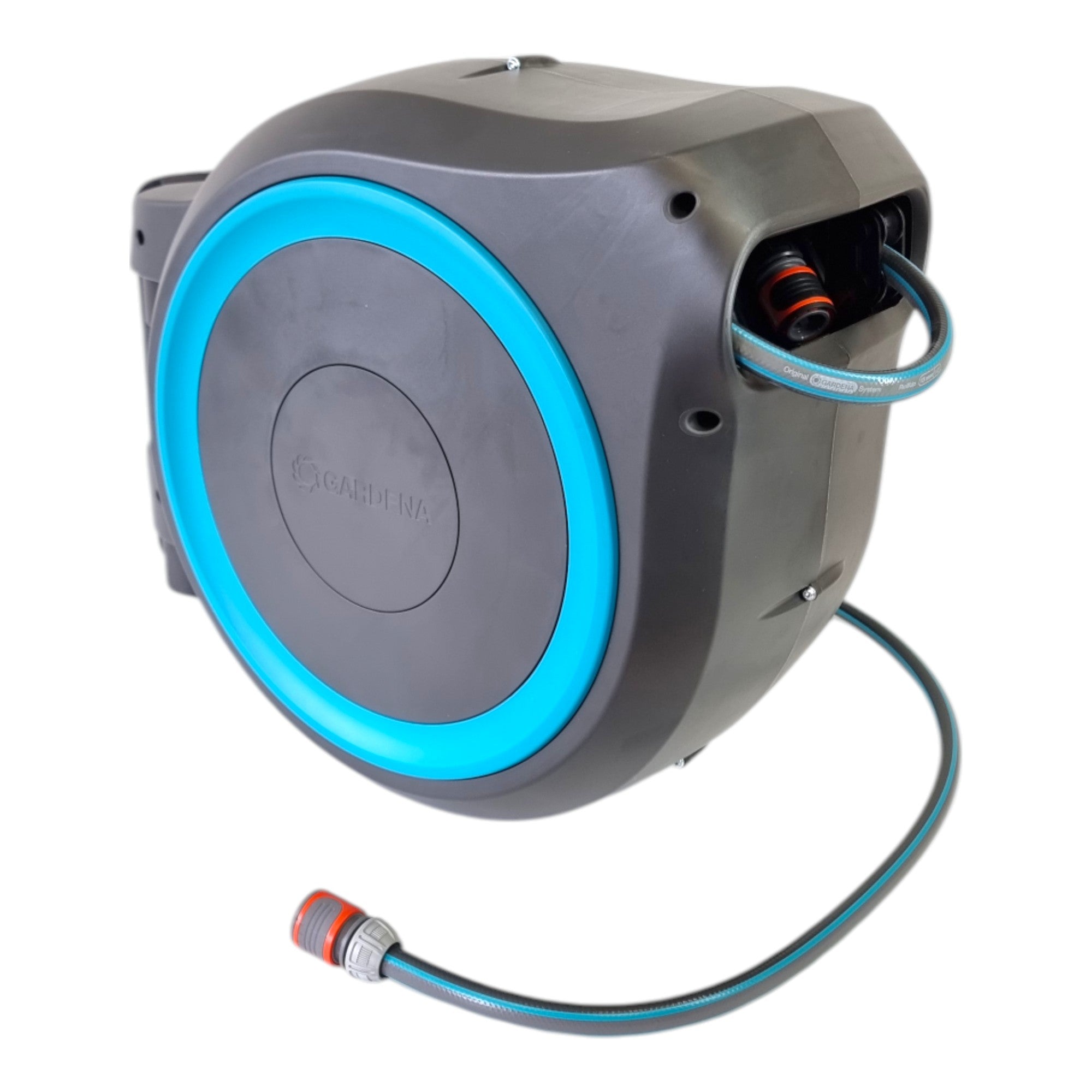 Avec la boîte à tuyau murale RollUp XL GARDENA, l'arrosage des grands jardins devient un jeu d'enfant confortable : la boîte compacte peut être fixée durablement au mur de la maison et est équipée d'un tuyau de 35 mètres de long qui, grâce à sa construction pivotante à 180°, t'offre une liberté de mouvement maximale lors de l'arrosage - sans torsion, pliage ou nouage gênants. Si tu tires le tuyau à la longueur souhaitée, de courtes butées d'arrêt s'enclenchent automatiquement et le fixent de manière fiable sur place. Il suffit de tirer légèrement pour que le ressort en acier intégré rétracte le tuyau de manière régulière, sûre et sans rebondissement incontrôlé grâce à la technologie RollControl. Le guidage précis du tuyau assure un enroulement ordonné sans plis. Grâce au système original GARDENA qui a fait ses preuves, tous les accessoires d'arrosage GARDENA peuvent être raccordés de manière flexible - et même rangés sous le support mural pour gagner de la place. La construction protégée contre les UV et le gel permet au RollUp XL de résister toute l'année aux intempéries, tandis qu'une protection antivol offre une sécurité supplémentaire. Toutes les pièces de montage et de raccordement nécessaires sont fournies, y compris le tuyau de raccordement, le support mural, les pièces du système ainsi qu'un pulvérisateur avec deux options de jet - pour une expérience d'arrosage bien pensée.