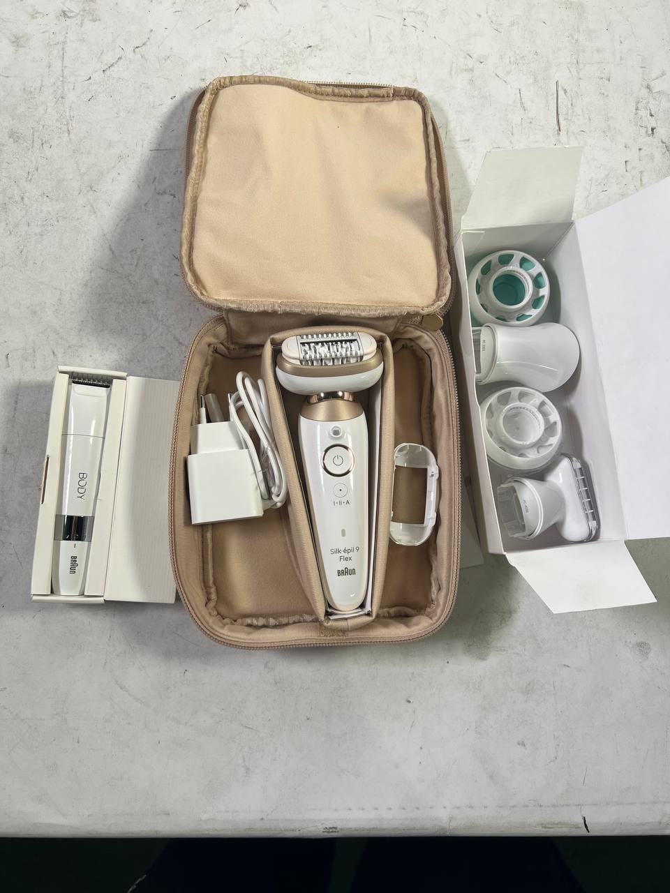 BRAUN Silk-pil 9 Flex 9-100 Coffret beauté Epilateur Femme + brosse nettoyante visage FaceSpa + 9 accessoires + housse blanche / dorée