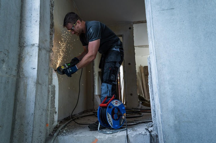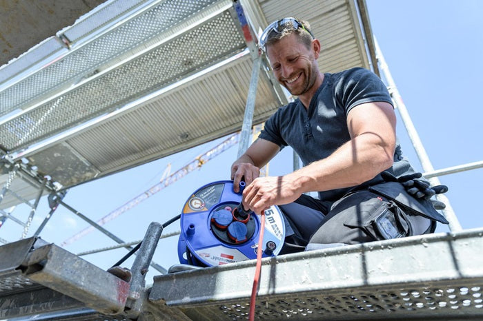 Le tambour de câble industriel/de chantier Garant IP44 avec une longueur de câble de 25 m de couleur bleue de Brennenstuhl convainc par sa qualité et sa sécurité dans tous les domaines. Le tambour de câble est idéal pour les chantiers et l'utilisation à l'extérieur. Il convainc également par les caractéristiques suivantes : Poignée de transport innovante ″cablepilot″ pour un guidage parfait des câbles. Oscille des deux côtés et permet de porter et de suspendre confortablement le câble RN est homologué pour les conditions de construction difficiles selon VDE 0100 partie 704 Avec poignée rotative pour un enroulement confortable Indice de protection IP44 Longueur de câble 25m Désignation du câble H07RN-F 3G2,5 Qualité du câble caoutchouc-néoprène Couleur du câble noir Diamètre du tambour 290 mm